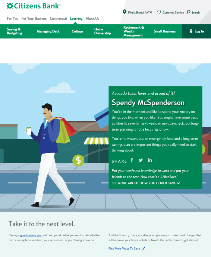 Your results? We developed four savings personas to capture the quiz results in a clever, thought-provoking (and shareable) mode.